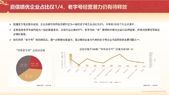 《報告》提出,從企業(yè)側(cè)來看,企業(yè)資質(zhì)與信用狀況被判定為一般的老字號企業(yè)占比37%,分布在150余個行業(yè)分類中。老字號的“老”使得部分餐飲企業(yè)對品牌經(jīng)營、聲譽風(fēng)險管理等缺乏足夠的重視。