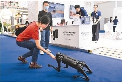 第三屆中國(guó)國(guó)際消費(fèi)品博覽會(huì)科技感十足,參展的各家中國(guó)企業(yè)將“科技感”滿(mǎn)滿(mǎn)的產(chǎn)品展示出來(lái),讓觀(guān)眾在消博會(huì)上與前沿的國(guó)產(chǎn)科技零距離接觸,體驗(yàn)國(guó)產(chǎn)“黑科技”。圖為4月13日,觀(guān)眾跟科大訊飛展出的機(jī)器狗互動(dòng)。新華社記者 楊冠宇攝
