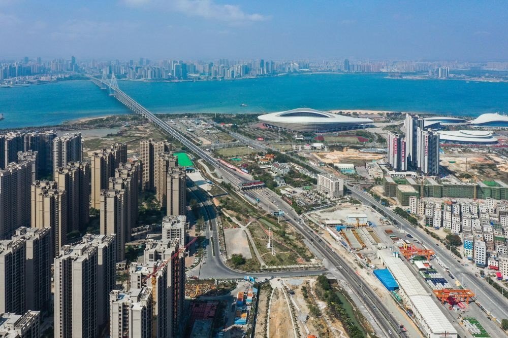 2月28日,廣湛鐵路湛江灣海底隧道盾構區(qū)間“過海穿城”(無人機照片)。新華社記者 劉大偉 攝