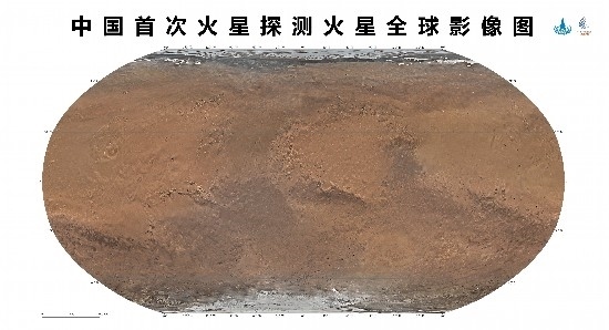 人民網(wǎng)北京4月24日電 (記者趙竹青、王震)記者從國家航天局獲悉,4月24日,在2023年“中國航天日”主場活動(dòng)啟動(dòng)儀式上,國家航天局和中國科學(xué)院聯(lián)合發(fā)布了中國首次火星探測火星全球影像圖。本次發(fā)布的影像圖為彩色,包括按照制圖標(biāo)準(zhǔn)分別制作的火星東西半球正射投影圖、魯賓遜投影圖和墨卡托投影加方位投影圖,空間分辨率為76米,將為開展火星探測工程和火星科學(xué)研究提供質(zhì)量更好的基礎(chǔ)底圖。天問一號(hào)任務(wù)獲取的包括影像圖在內(nèi)的一批科學(xué)探測數(shù)據(jù),將為人類深入認(rèn)知火星作出中國貢獻(xiàn)。