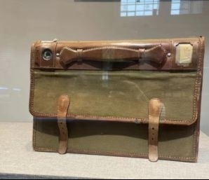 保密公文包也值得一次合影留念。老式公文包的基礎上加了風琴包的拓寬設計,拉鏈線繩穿過包蓋上的小孔,最后加上橡皮泥拓印,就是一個老式的安全保密小機關。