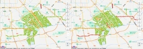 但在北京的亦莊AI信控區(qū)域內(nèi),假期的到來(lái)并未對(duì)亦莊市民的生活產(chǎn)生影響,4月28日晚高峰期間,亦莊區(qū)域受到北京交通壓力影響,300多個(gè)路口車流量雖有上漲,但在交通大模型的支持下,整片區(qū)域一路飄綠,擁堵指數(shù)控制在1.6以內(nèi)。通過(guò)數(shù)據(jù)對(duì)比可以看出,百度AI信控及交通大模型技術(shù),有效緩解了重大突發(fā)交通壓力下的擁堵情況,能夠?yàn)槌鞘械慕煌ǔ鲂袔?lái)巨大的改變。