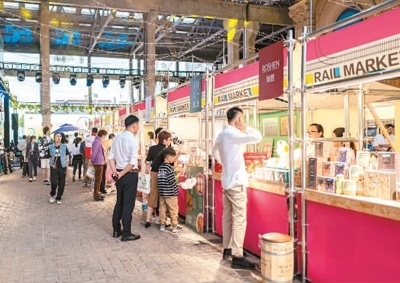 5月5日,上海市寶山區(qū)淞南鎮(zhèn)中成智谷創(chuàng)意園區(qū),市民在逛“數(shù)字零售”鐵軌市集。王 初攝(人民視覺)