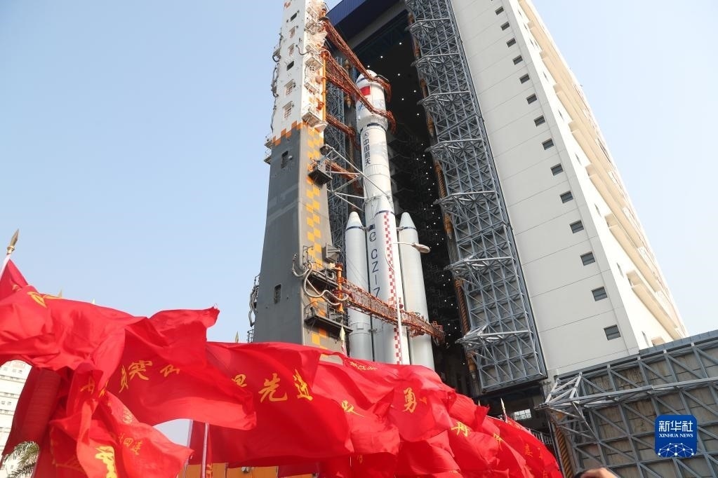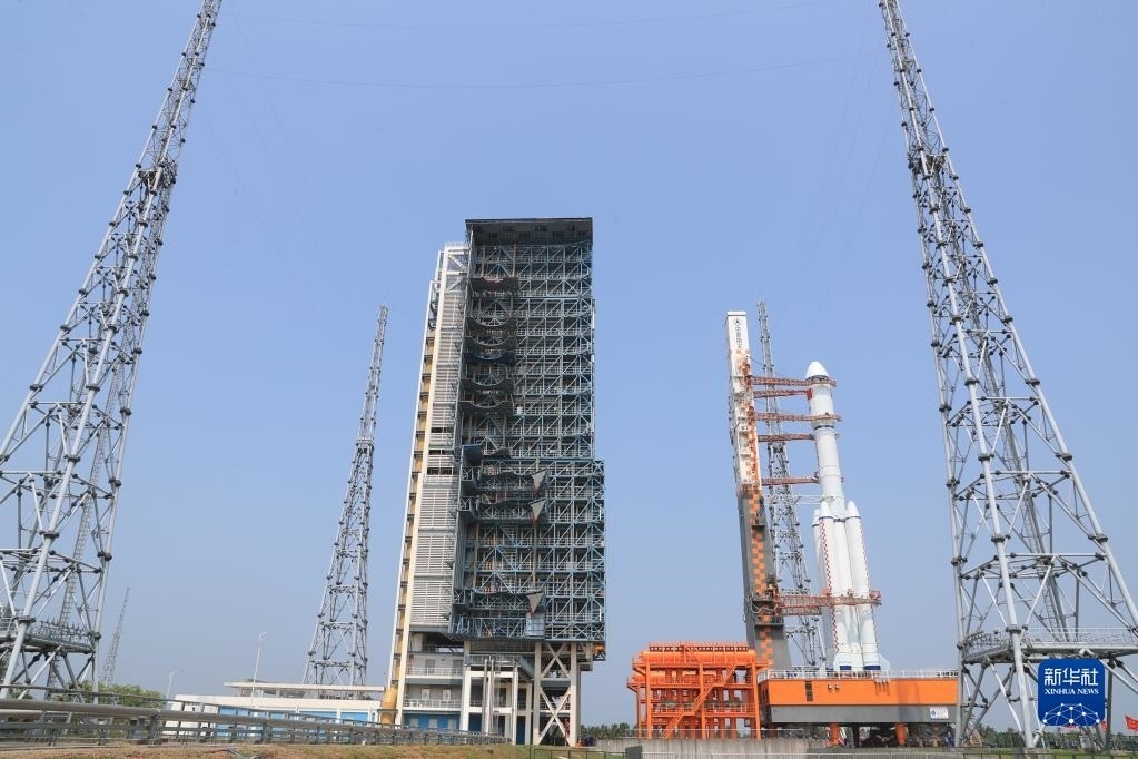 5月7日,天舟六號(hào)貨運(yùn)飛船與長征七號(hào)遙七運(yùn)載火箭組合體準(zhǔn)備轉(zhuǎn)運(yùn)。新華社發(fā)(邱立軍 攝)