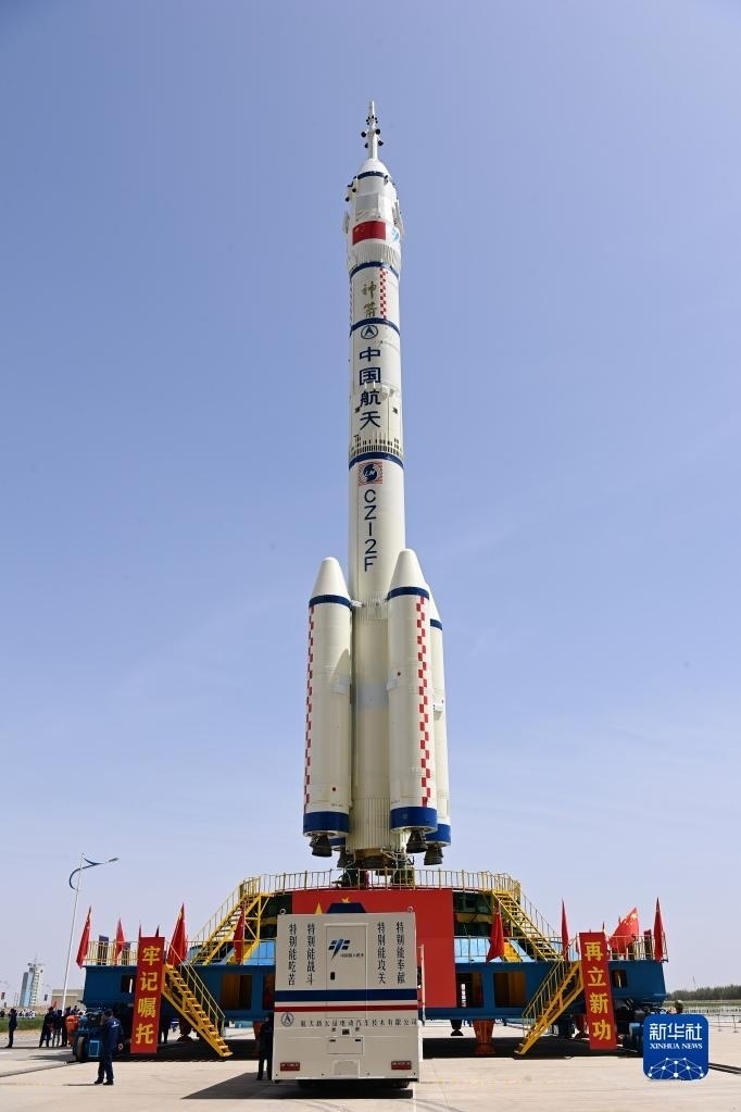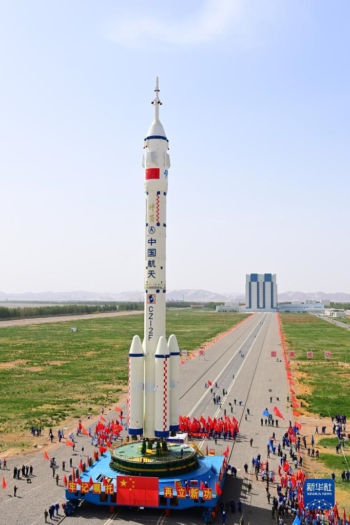 5月22日,神舟十六號載人飛船與長征二號F遙十六運載火箭組合體在轉(zhuǎn)運途中。新華社發(fā)(汪江波 攝)