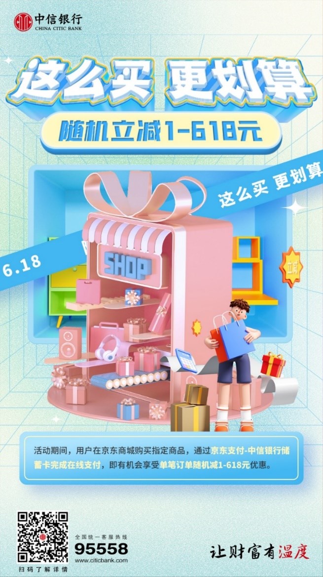 一年一度的“618”已拉開序幕。中信銀行表示,將繼續(xù)豐富用卡環(huán)境,為客戶提供優(yōu)質(zhì)購(gòu)物場(chǎng)景和體驗(yàn),以“促消費(fèi)、惠民生”為使命,助力萬(wàn)千客戶享受超值生活。