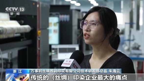 萬(wàn)事利絲綢數(shù)碼印花有限公司技術(shù)研發(fā)部總監(jiān) 朱海云:傳統(tǒng)的絲綢印染企業(yè)最大的痛點(diǎn)就是庫(kù)存壓力,現(xiàn)在我們通過(guò)人工智能AI的設(shè)計(jì),再加上我們的一體機(jī)快返的工藝特點(diǎn),它能夠達(dá)到一個(gè)先銷(xiāo)后產(chǎn)的經(jīng)營(yíng)模式,能夠解決我們庫(kù)存壓力的痛點(diǎn)。