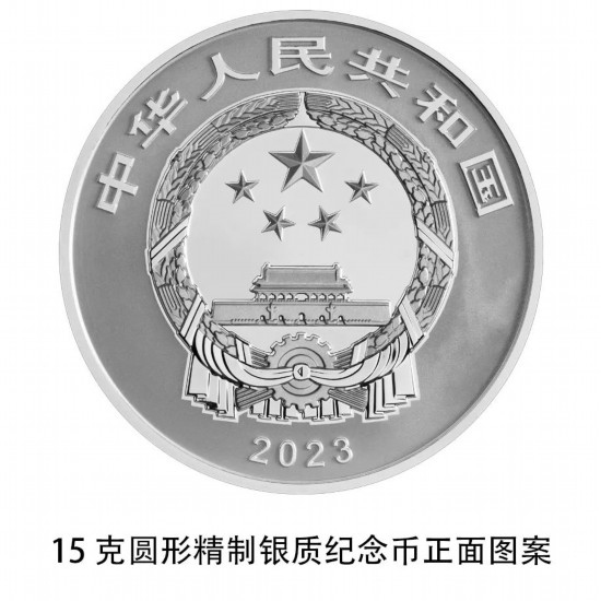 15克圓形銀質(zhì)紀(jì)念幣為精制幣,含純銀15克,直徑33毫米,面額5元,成色99.9%,最大發(fā)行量4×80000枚。