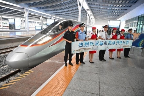 9月28日,福廈高鐵復興號智能動車組G9801次列車工作人員合影。新華社記者 姜克紅 攝
