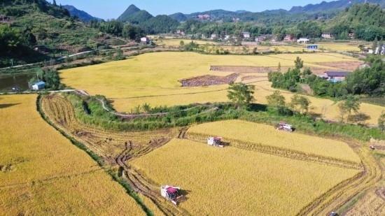 秋收時節(jié),稻田稻浪翻滾,作為“巴渝糧倉”的重慶梁平區(qū)又迎來了豐收景象。
