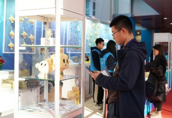 11月29日,觀眾(前)觀看“鏈氪”文創(chuàng)產(chǎn)品。
