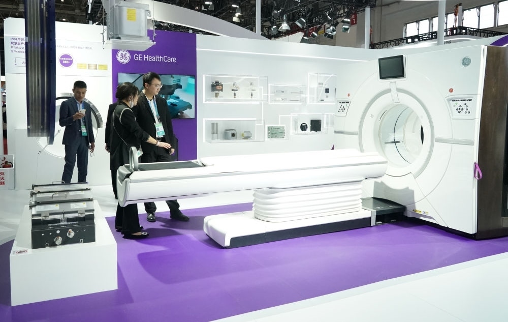 這是在首屆中國國際供應(yīng)鏈促進博覽會健康生活鏈展區(qū)拍攝的GE醫(yī)療展位(2023年11月29日攝)。新華社記者 任超 攝