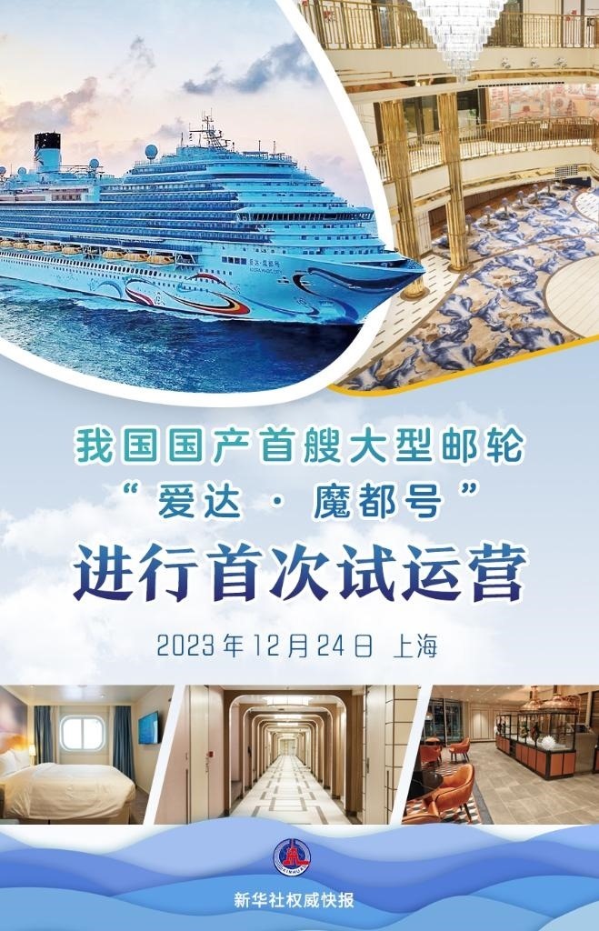 新華社上海12月24日電(記者賈遠(yuǎn)琨、張辛欣)12月24日,國(guó)產(chǎn)首艘大型郵輪“愛(ài)達(dá)·魔都號(hào)”在上海吳淞口國(guó)際郵輪港離港出海,進(jìn)行首次試運(yùn)營(yíng)。