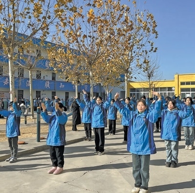 上午10點(diǎn),下課鈴一響,麥仁學(xué)校的學(xué)生們迅速在操場(chǎng)上整齊排列,做起了課間操。