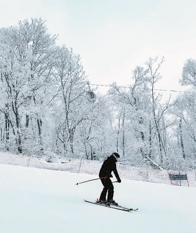 吉林省吉林市萬(wàn)科松花湖度假區(qū),游客在體驗(yàn)滑雪樂(lè)趣。新華社記者 許 暢攝