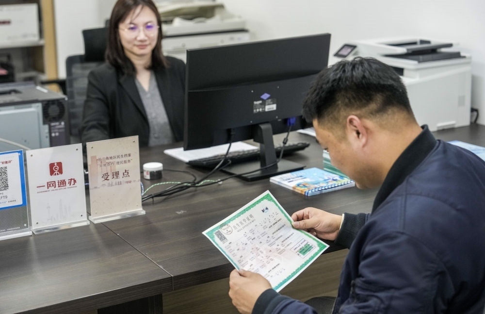 2024年3月8日,市民在位于上海市檔案館的長三角地區(qū)民生檔案異地查檔受理點(diǎn)查詢出生醫(yī)學(xué)證明檔案。新華社發(fā)(陳夢澤 攝)