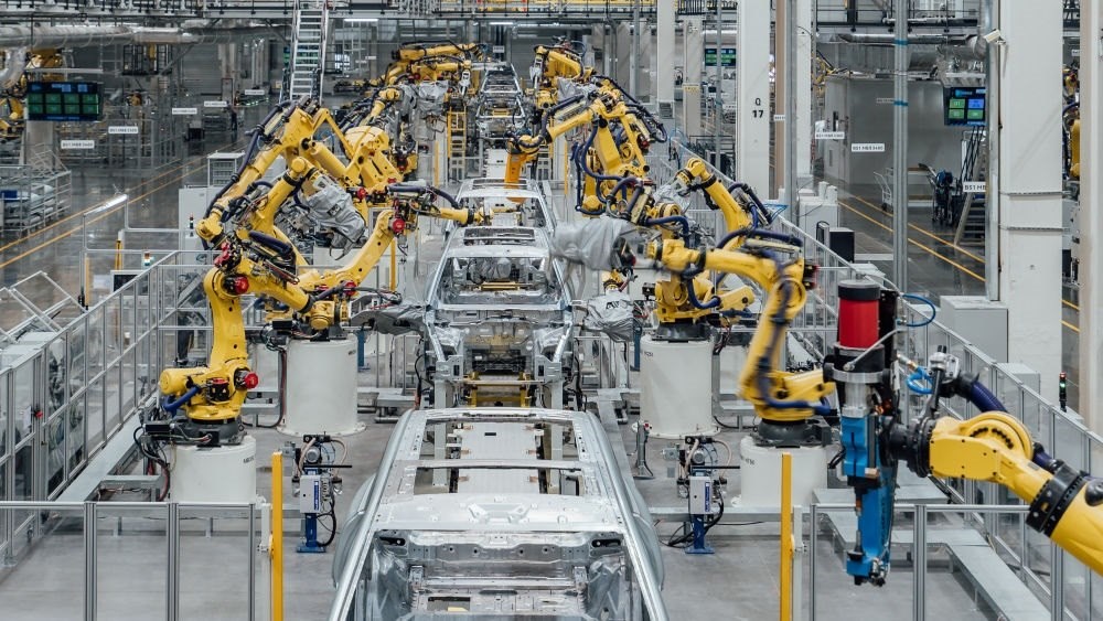 這是在重慶市兩江新區(qū)拍攝的賽力斯汽車(chē)超級(jí)工廠焊裝車(chē)間生產(chǎn)線(2024年2月26日攝,無(wú)人機(jī)照片)。新華社發(fā)(高彰 攝)