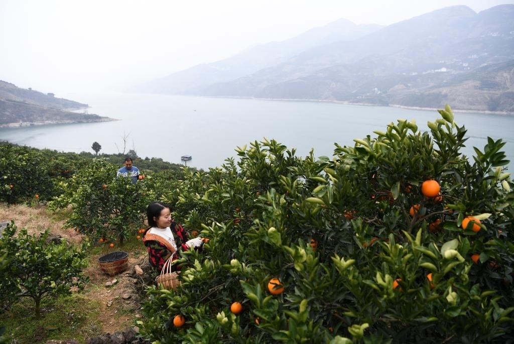 奉節(jié)縣永樂鎮(zhèn)村民在采摘臍橙。新華社記者王全超 攝