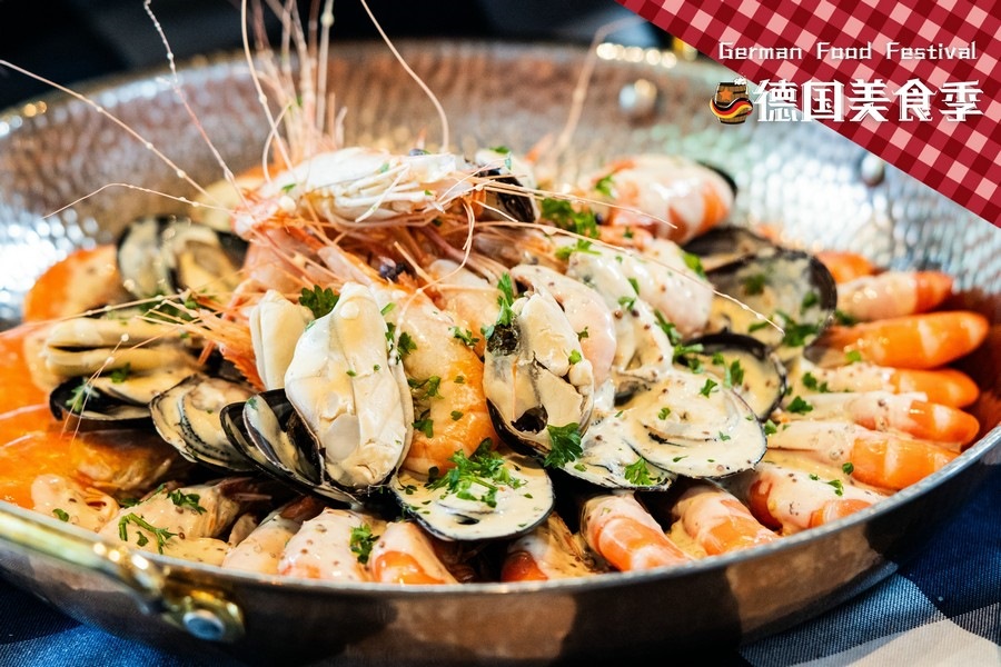 馨咖啡——海鮮洋酒自助,在行政總廚Jerry張強的加持下,再度增添美味的獨特體驗,8月9日—8月25日,正宗德式美食驚艷亮相!德國美食以其豐富多樣、實在美味和濃郁地方特色而聞名。來自德國巴伐利亞地區(qū)的特色美食“烤豬肘”, 外皮金黃酥脆,內(nèi)部肉質鮮嫩多汁,搭配酸菜和土豆泥,口感豐富; 德國香腸種類繁多,芝士香腸、盤腸、圖靈根腸、法蘭克福腸、黑胡椒腸,制作工藝獨特,口味多樣;維也納炸豬排,酥脆的外皮和鮮嫩的肉質形成的鮮明口感對比;德式芥末燴海鮮,德式芥末為這道菜帶來獨特的風味,奶油、白葡萄酒、香草等調(diào)料,使湯汁變得濃郁醇厚,海鮮鮮嫩多汁,湯汁濃郁鮮美。更有享譽盛名的德國啤酒選擇,大麥的醇厚香氣、啤酒花的微微苦澀相互交織,營造出一種平衡而美妙的口感。