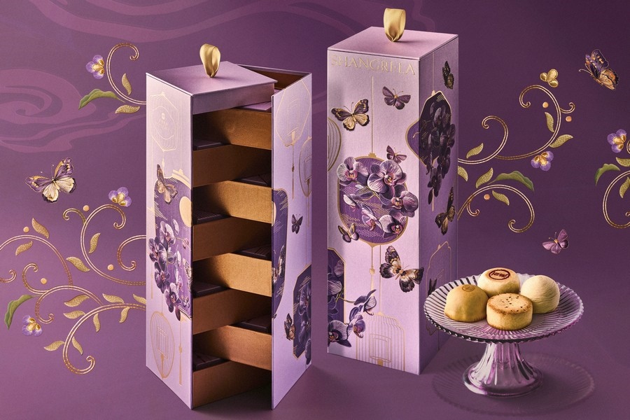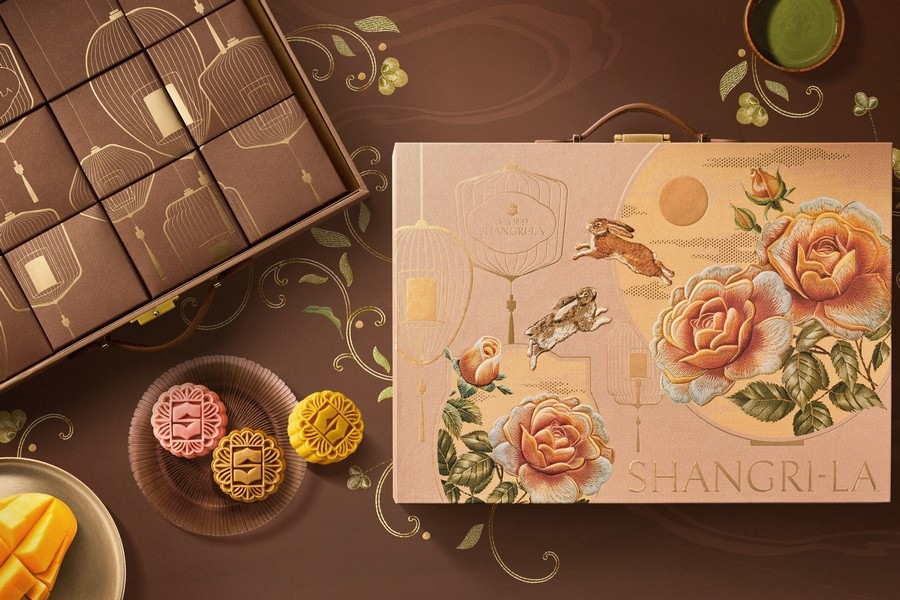 童心未泯家庭款月餅,創(chuàng)意可愛的小火車造型,一盒囊括哈密瓜鳳梨雙果、紅豆山楂、巧克力牛奶芯三種新穎口味,滿載溫馨與甜蜜緩緩駛來;賞心月目雪媚娘流心月餅,打破傳統(tǒng)的禮盒,采用了別致巧思的浪漫禮包,包內(nèi)裝有雪媚娘巧克力流心核桃栗子、烏龍白桃水蜜桃流心、陳皮土鳳梨金桔流心和抹茶紅豆草莓流心月餅,細膩爽口,唇齒滿足, 給味蕾帶來別樣享受;八方鴻運月餅,八珍玉食,八面玲瓏,禮盒中包含廣式單黃白蓮蓉、蘇式百果椒鹽、瓊式純鳳梨酥、京式自來紅、潮式松露鮑魚、晉式蛋月燒棗泥松仁、滇式玫瑰云腿、川香牛肉藤椒軟心,可甜可咸,款款新意,薈萃八方鴻運,饋贈四方親朋;香格里拉手提箱月餅,設計精巧的手提箱,薈萃亞洲滋味,馬來西亞白咖啡、椰汁西米、宇治抹茶、榴蓮、芒果柚子、香蘭葉月餅,一盒六味,配上軟糯綿化的桃山皮,一口甘香,馥郁悠長。一系列月餅禮盒,結合濃郁當?shù)靥厣摹把蛉舛Y盒”、“燒麥禮盒”、“烤羊腿禮盒”,還有香格里拉定制青島啤酒、醬香白酒、甄選紅酒等為節(jié)日助興。