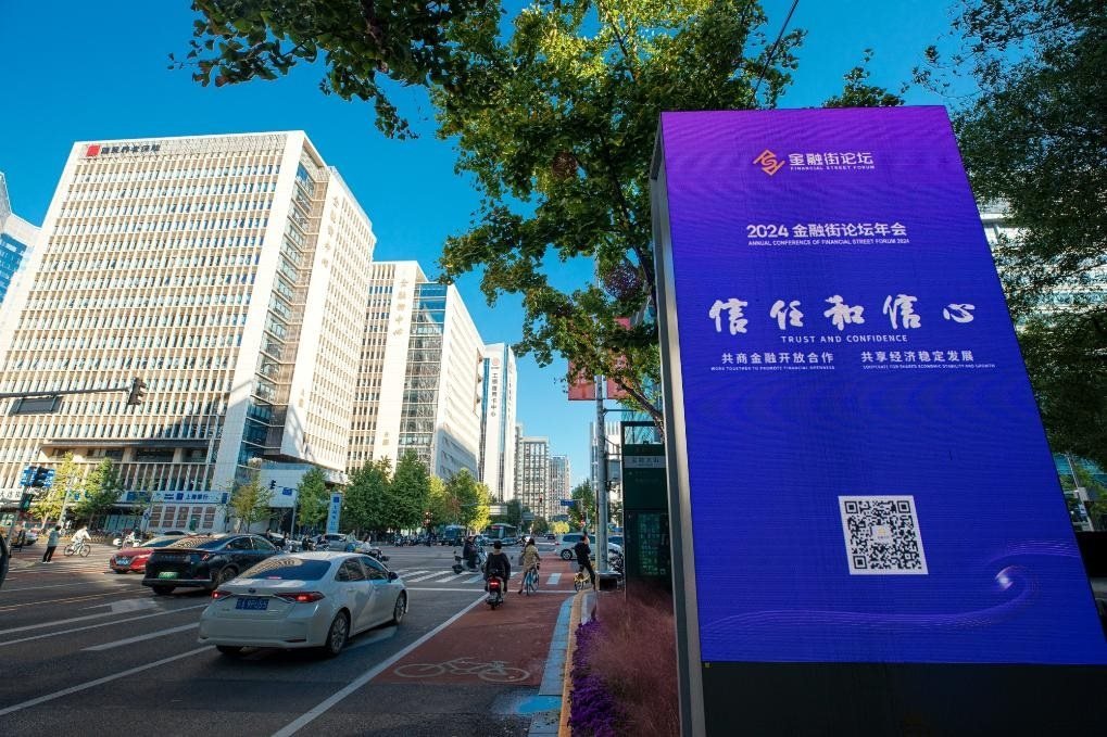 2024金融街論壇年會(huì)的會(huì)場外設(shè)置展示大屏。新華社發(fā)