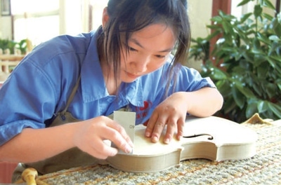 陳鳳軍身后的墻上,懸掛著一幅世界著名制琴大師斯特拉迪瓦里所制作的老琴圖片。閑暇時,他總會抬頭凝視,仔細研究它的每一處細節(jié)?!耙话迅纫话押?,做琴是永遠學不完的”,如今他已經斬獲了多項國際制琴比賽專業(yè)大獎。