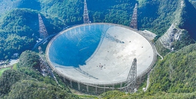 “中國天眼”全景(維護(hù)保養(yǎng)期間拍攝)。