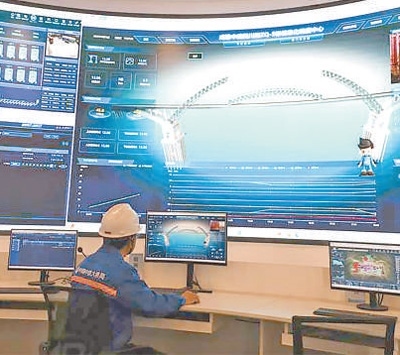 馬天亮把手指向了施工項目部大屏幕上的智能溫控系統(tǒng),混凝土溫度、流量等參數(shù)依次展示?!皟?nèi)部混凝土溫度過高,增加冷卻水管通水流量?!眰鞲衅鞅O(jiān)測到混凝土溫度異常后,智能溫控系統(tǒng)自主啟動對冷卻水管通水時長和流量的調(diào)節(jié)。
