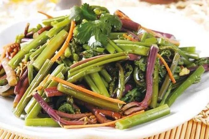 呼倫貝爾盛產(chǎn)蕨菜。每年5月是采摘蕨菜的黃金季節(jié)。將采摘的嫩葉洗凈鹽漬,鹽漬的蕨菜,深受百姓歡迎??甚r食或曬干菜,可熗、燉、炒、涮或拌飯等。