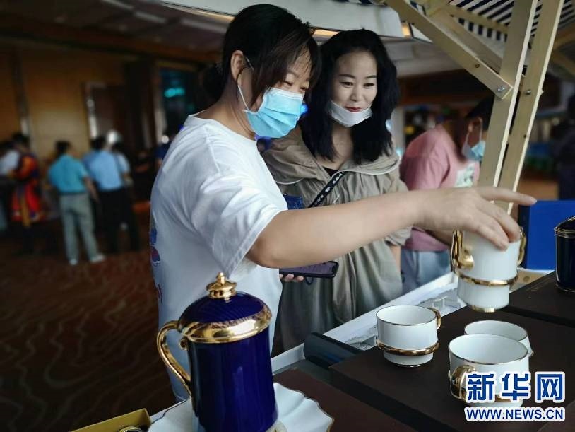 這是在活動現(xiàn)場設(shè)置的“內(nèi)蒙古禮物”非遺文創(chuàng)展示區(qū)。新華網(wǎng)發(fā)