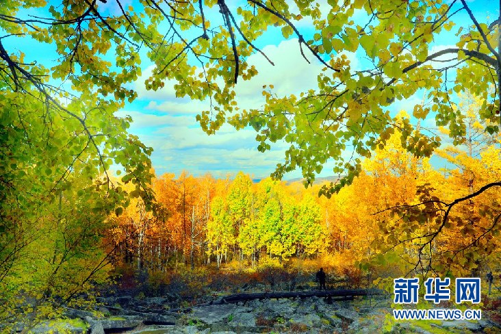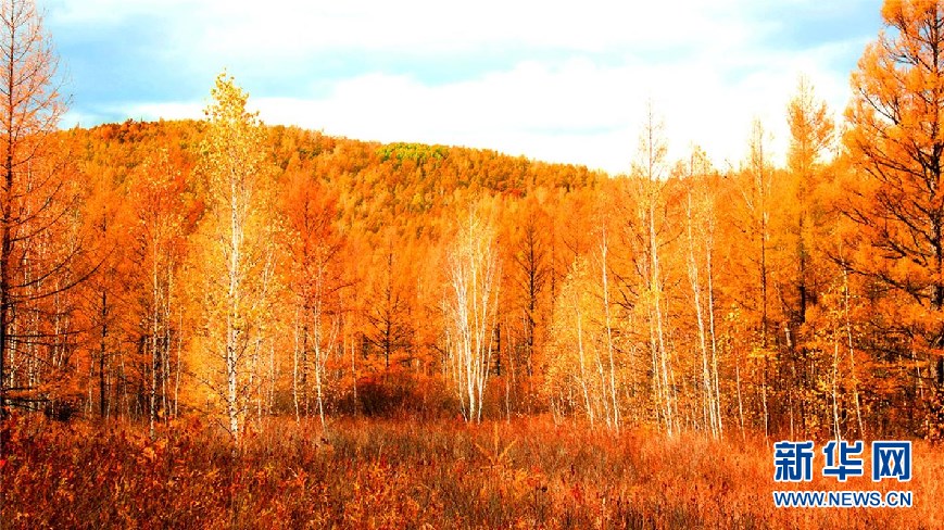 內(nèi)蒙古大興安嶺阿里河國(guó)家森林公園內(nèi)的樺林紅葉。(9月28日攝)新華網(wǎng)發(fā)(欒維敬 攝)