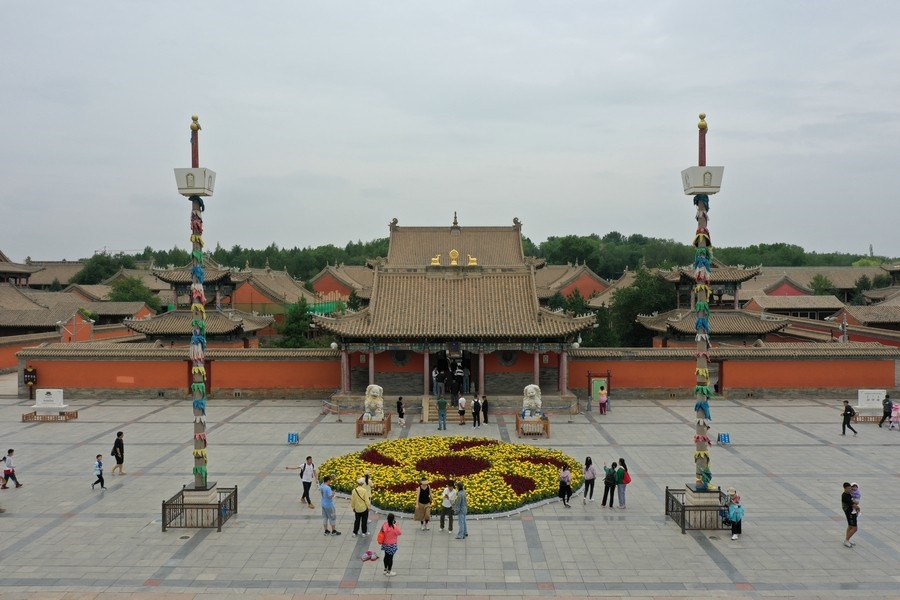 在敖包山下,是著名的貝子廟。歷史上,錫林浩特曾以“貝子廟”為地名稱謂,這座始建于1743年(清乾隆八年)的寺廟,是一座凝聚著蒙、漢、藏多民族文化藝術(shù)的古建筑瑰寶。解放戰(zhàn)爭時期,貝子廟還是內(nèi)蒙古重要的革命根據(jù)地。