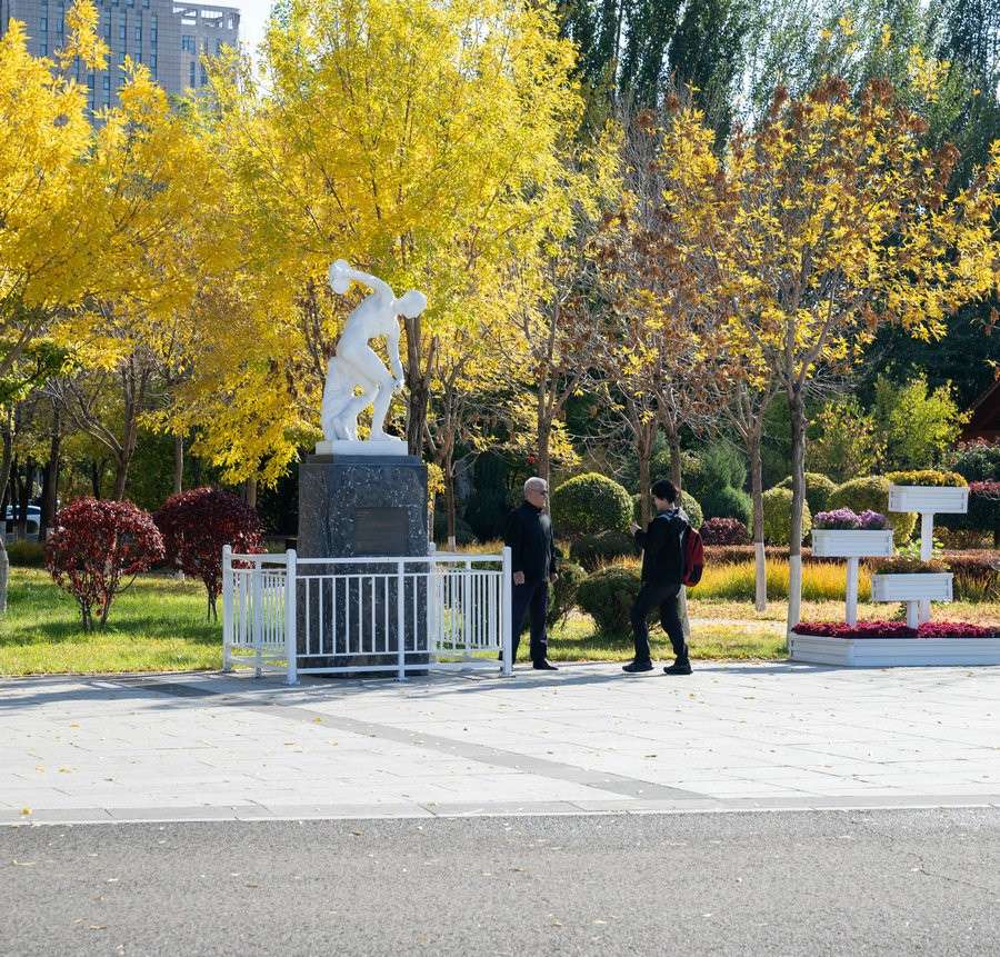 10月18日 游客在呼和浩特國(guó)際雕塑園拍照留念