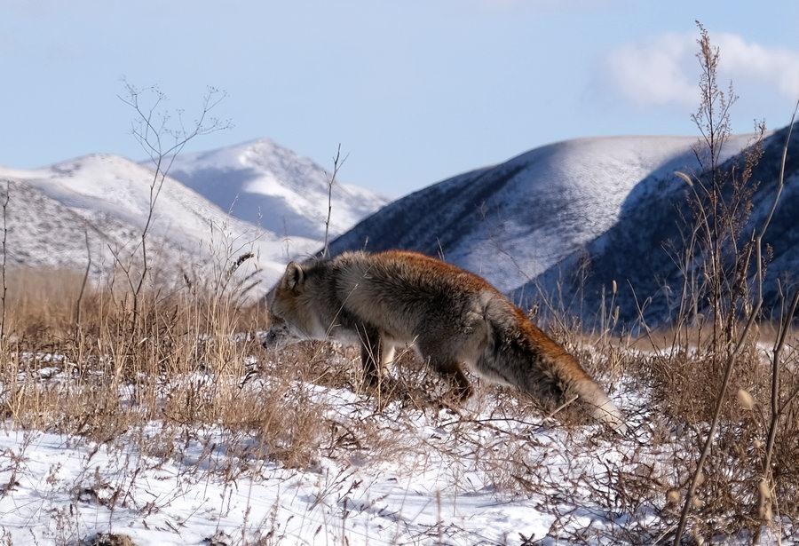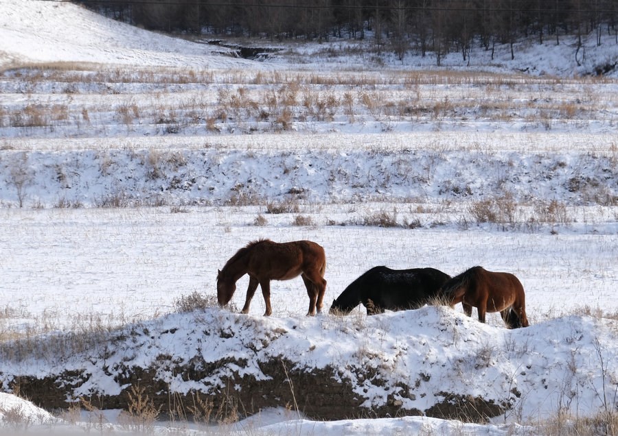 動(dòng)物們成群結(jié)隊(duì)在雪地覓食