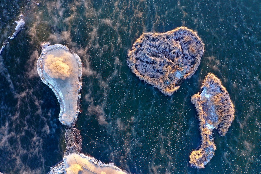 12月15日,上萬只赤麻鴨在塞外“千島湖”棲息