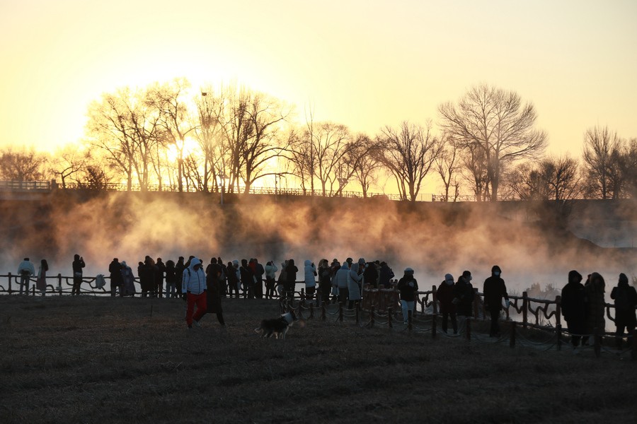 12月15日清晨,上千名游人在呼和浩特玉泉區(qū)班定營村南側(cè)的塞外“千島湖”畔賞景打卡。此處湖水為城市污水經(jīng)處理達標(biāo)后的再生水,隆冬時節(jié),再生水流入湖中,水汽蒸騰,岸邊草木霧凇皚皚,良好的生態(tài)吸引了數(shù)萬只赤麻鴨在此翔集棲息,構(gòu)成一幅生動和諧的美麗畫面。每日清晨,都有上千名游客來此觀日出賞美景。