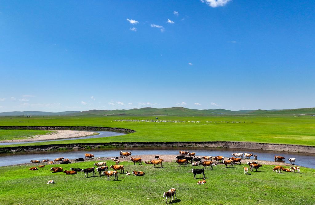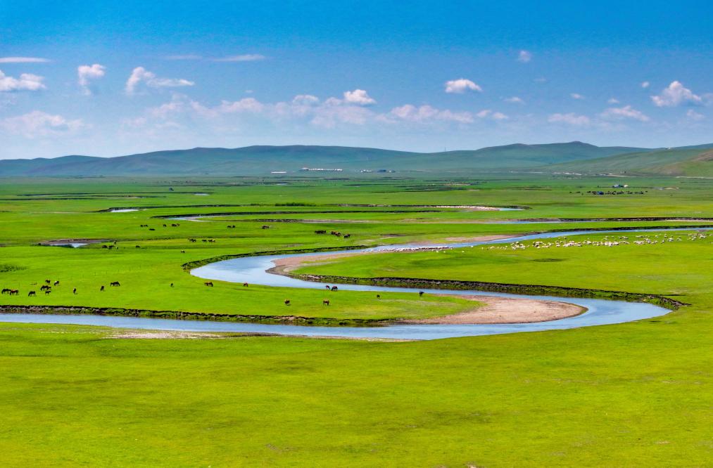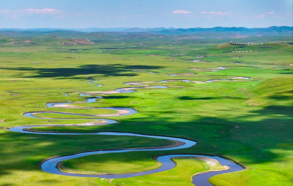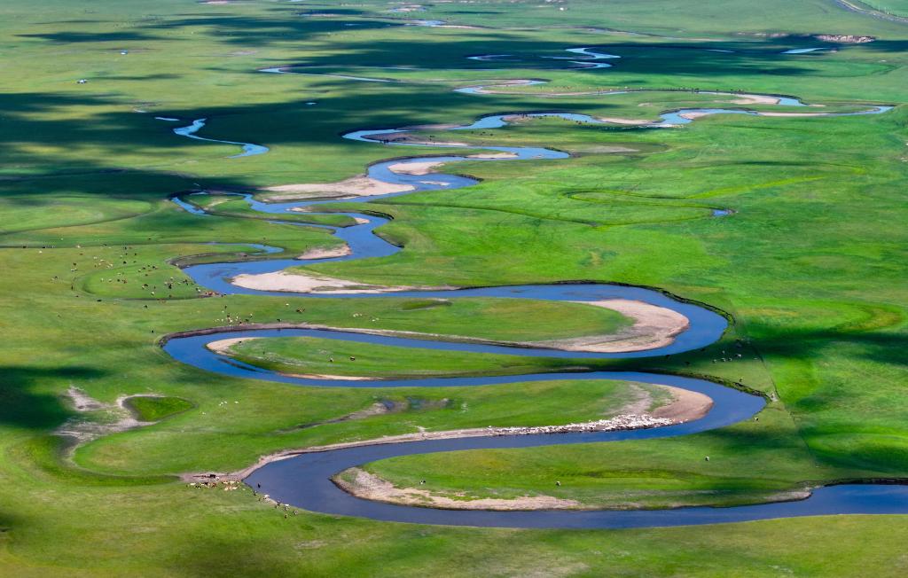 以“曲”聞名天下的莫爾格勒河發(fā)源于內(nèi)蒙古自治區(qū)呼倫貝爾市陳巴爾虎旗境內(nèi),全長(zhǎng)319公里。盛夏時(shí)節(jié),迂回輾轉(zhuǎn)的河道、低垂的云影、成群的牛羊共同構(gòu)成一幅宛如油畫般的草原風(fēng)情畫卷。
