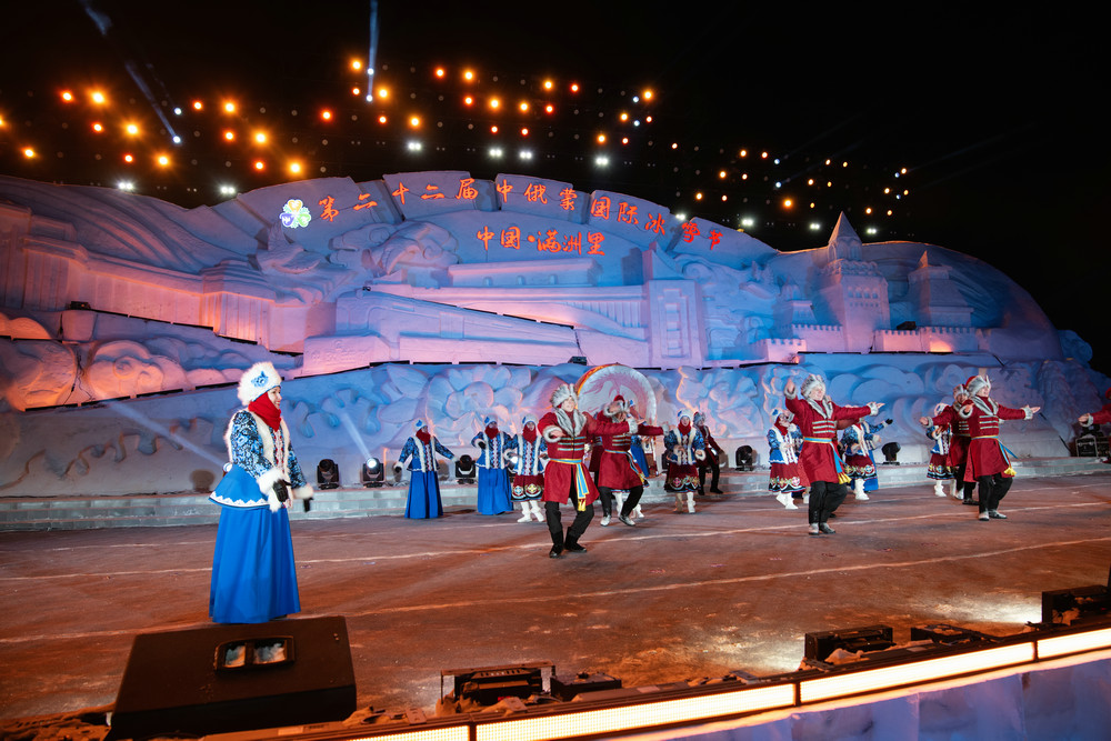 作為當(dāng)日重頭戲,冰雪節(jié)開幕式暨《冰雪芳華》主題樂園開園儀式于晚間精彩上演。中俄蒙三國(guó)表演團(tuán)隊(duì)輪番登臺(tái),用悠揚(yáng)的歌聲、靈動(dòng)的舞姿傳遞三國(guó)友誼,為現(xiàn)場(chǎng)觀眾獻(xiàn)上一場(chǎng)兼具民族風(fēng)情與國(guó)際視野的文化盛宴。