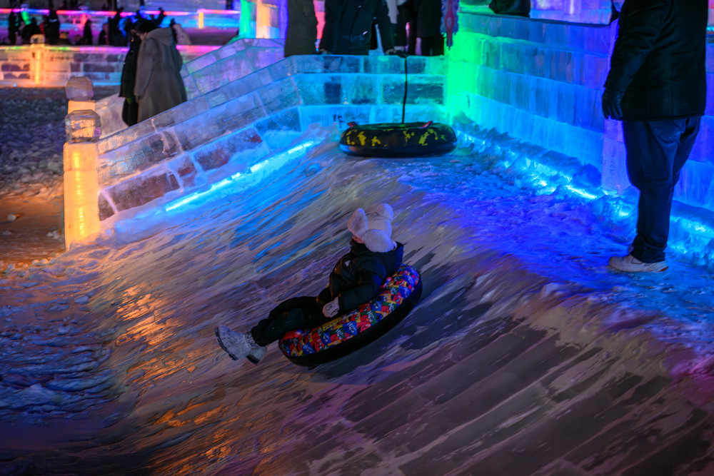 游客在《冰雪芳華》主題樂園內(nèi)體驗(yàn)