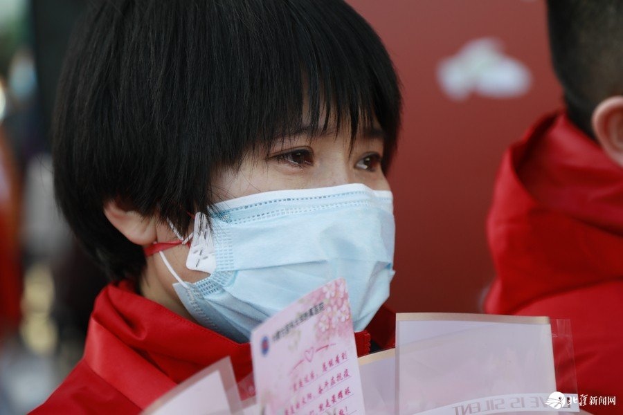 “終于把你們盼回來啦!”家人、同事們熱情擁抱,喜極而泣,歡迎“白衣戰(zhàn)士”平安歸來。