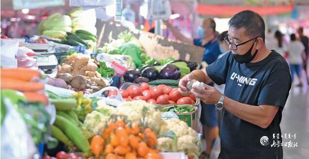 6月17日,呼和浩特市民在選購蔬菜。據(jù)全區(qū)各盟市上報(bào)自治區(qū)發(fā)改委價(jià)格監(jiān)測(cè)中心的監(jiān)測(cè)數(shù)據(jù)顯示:我區(qū)羊肉、雞肉、雞蛋、蔬菜類價(jià)格下降,牛肉價(jià)格上漲,豬肉、食用油、水產(chǎn)品價(jià)格略有升降,成品糧價(jià)格穩(wěn)中有降,豆腐、牛奶價(jià)格持平。雞蛋價(jià)格自5月上旬開始持續(xù)回落,地產(chǎn)蔬菜逐漸上市,全區(qū)蔬菜價(jià)格呈季節(jié)性下降趨勢(shì)。(內(nèi)蒙古日?qǐng)?bào)社融媒體記者孟和朝魯攝)