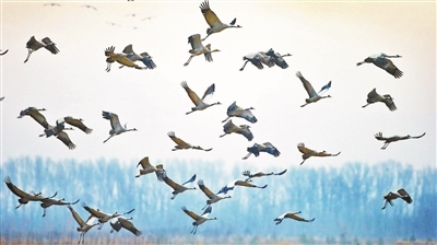 觀鳥者在密云區(qū)拍攝到的灰鶴,系國(guó)家II級(jí)保護(hù)鳥類