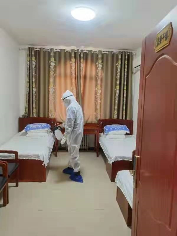 對樓層全封閉管理,增加公共區(qū)域消殺頻次,為負(fù)責(zé)清潔消殺人員配發(fā)了防護(hù)服、護(hù)目面罩、醫(yī)用手套,確保工作人員自身安全,認(rèn)真做好自身防護(hù)的同時,對停留公寓的14名乘務(wù)人員每日做好測溫登記、住宿房間進(jìn)行全面消殺,為他們提供清潔舒適、安全的住宿環(huán)境。