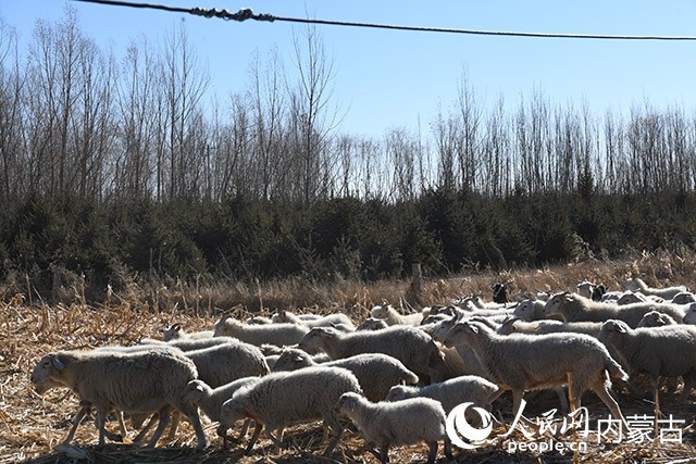 內(nèi)蒙古初冬,暖陽(yáng)微燥。牧民楊寶寶的100多只羊正在院子前的空地上曬太陽(yáng)。雪白的羊群映得小院磚明瓦亮。楊寶寶說(shuō)話時(shí),嘴角總是上揚(yáng)的,黝黑的皮膚上笑出深深的褶子。