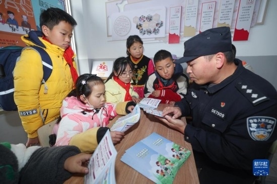 2月21日,在呼和浩特市玉泉區(qū)小召街道五塔寺廣場臨時(shí)核酸采樣點(diǎn),玉泉交管大隊(duì)民警在執(zhí)勤。新華網(wǎng)發(fā) (丁根厚 攝)