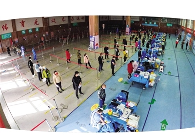 “從3月9日開始,呼和浩特全民健身中心乒羽網(wǎng)保館進行全面消殺,10日正式開始接種疫苗。配有大量志愿者現(xiàn)場維持秩序和引導(dǎo)市民有序接種,并針對一些特殊群體開辟了綠色通道,有效保證疫苗正常接種秩序?!焙艉秃铺厥腥窠∩矸?wù)中心黨支部副書記于首淼說。