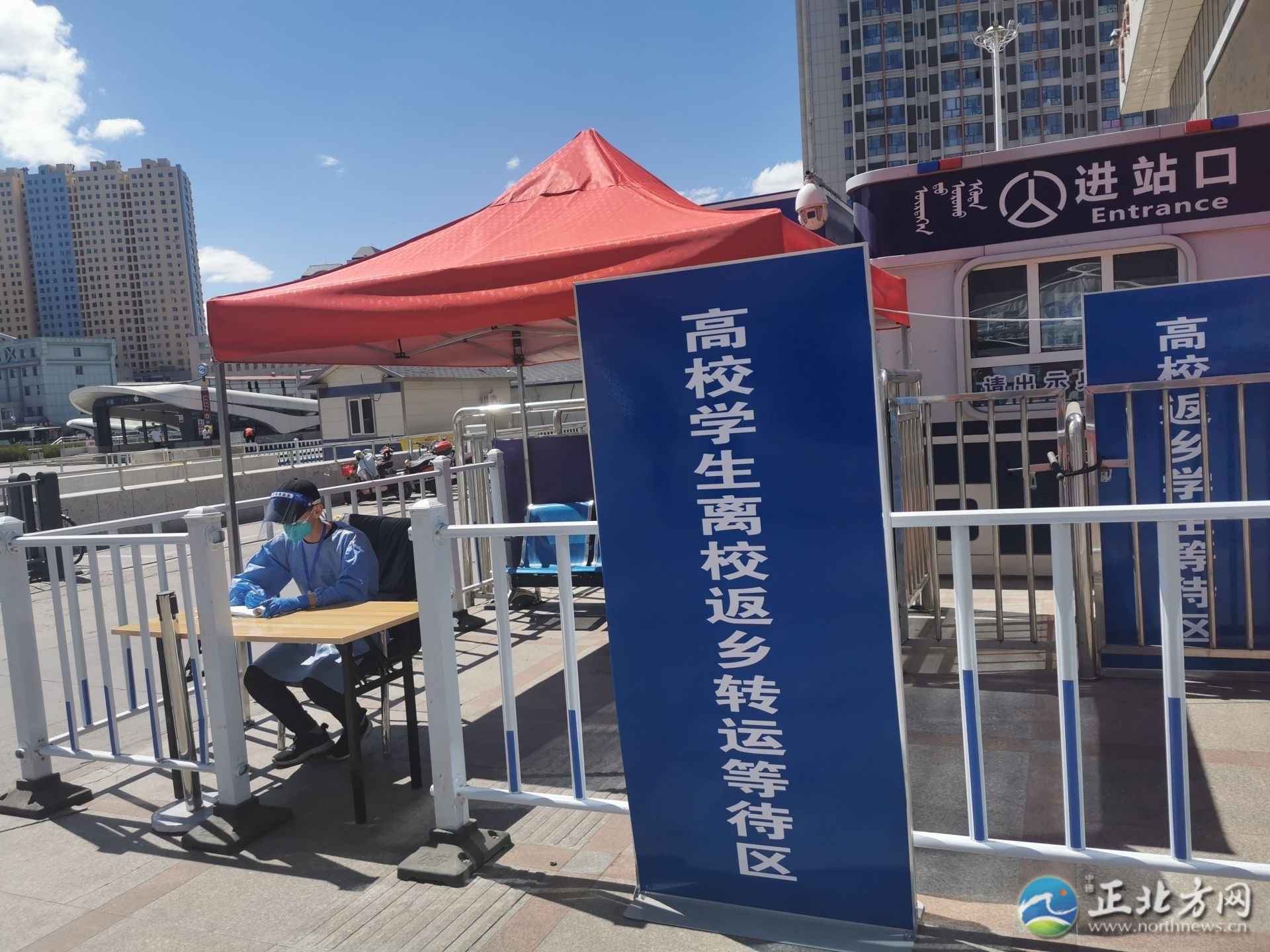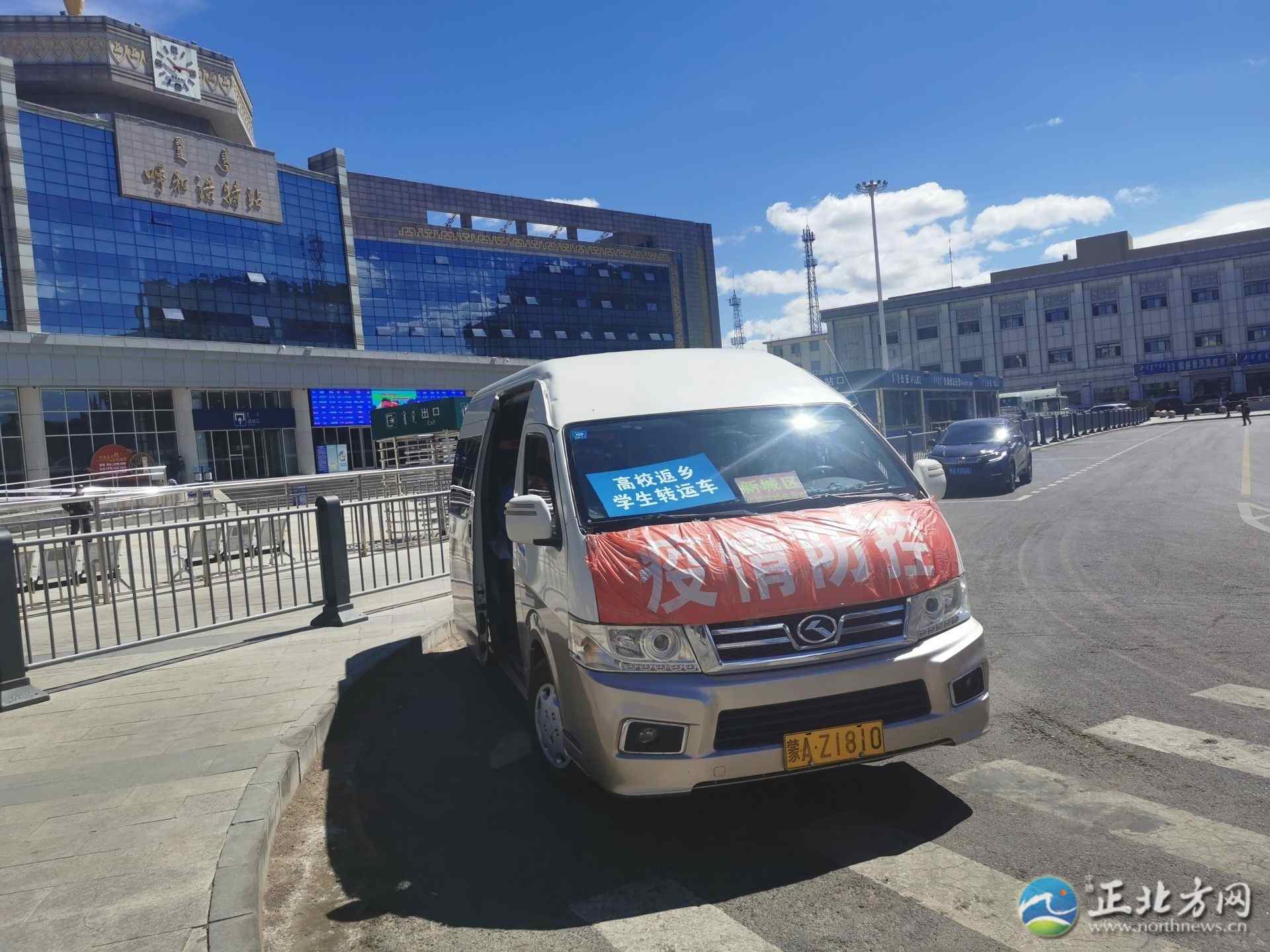 當日,記者在呼和浩特火車站出站口看到,這里設(shè)置了“高校學生離校返鄉(xiāng)專用通道”的牌子,大學生下了火車可以按照牌子和工作人員的指示,走專用通道出站,車站門口還停著一輛掛著“高校返鄉(xiāng)學生轉(zhuǎn)運車”牌子的面包車。
