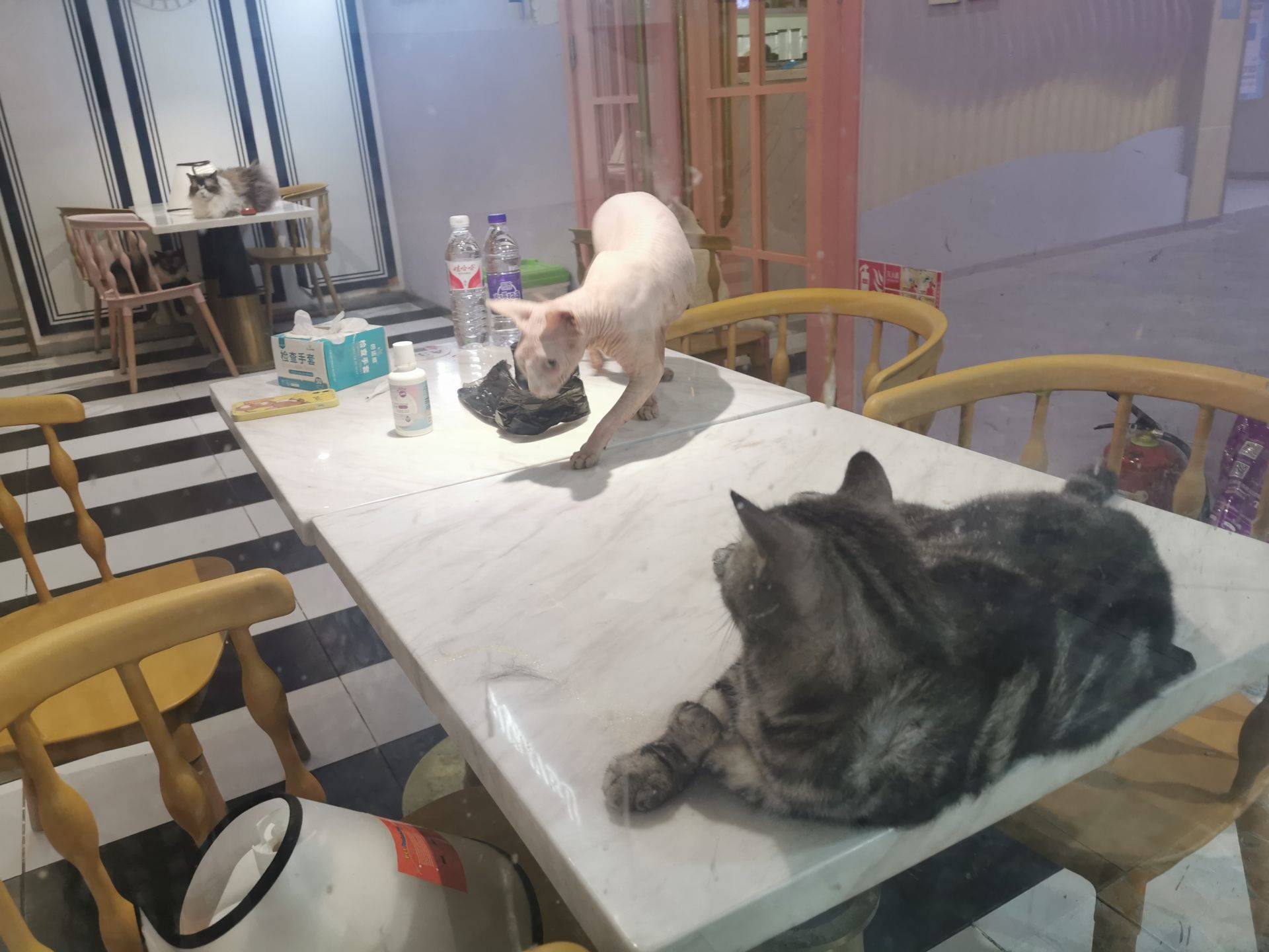 7月1日下午,記者來(lái)到貓小院貓咖,大門緊鎖,貼著暫停營(yíng)業(yè)的字樣。店內(nèi)昏暗無(wú)光,無(wú)人在場(chǎng)管理,透過(guò)玻璃櫥窗可以看到地面堆滿貓毛和污漬,甚至有打翻倒扣在地面的飲料杯,隔著門縫可以聞到明顯異味,幾十只貓咪滯留在店內(nèi),無(wú)精打采,有些貓咪的耳鼻眼處明顯存在淚痕、黑痂,疑似患有耳螨、鼻支等病。記者注意到,該店在美團(tuán)上的套餐已下架,撥打店內(nèi)座機(jī)顯示“電話已欠費(fèi)停機(jī)”,無(wú)法與店主取得聯(lián)系,記者與周邊其他店主進(jìn)行溝通后了解到,該店疑似存在拖欠房租、人員工資等情況,貓咪留在店內(nèi)無(wú)法帶走,有人會(huì)定期進(jìn)行照料?!耙婚_(kāi)門附近的店都得關(guān)門”,周邊商戶抱怨道。