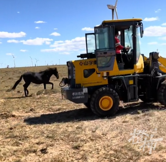 橙柿互動留意到,視頻內(nèi)容顯示:一匹老馬躺在車斗里,車前車后,有兩匹馬兒在圍追這輛鏟車,甚至擋住車斗,鏟車被迫多次停下。