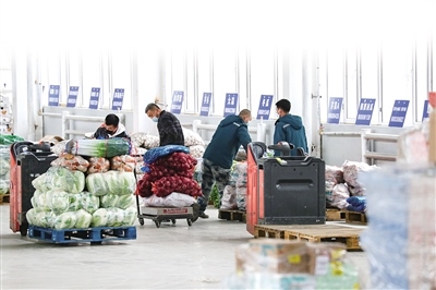 疫情防控期間,為保障呼和浩特市民生活物資需求,首府積極組織貨源,優(yōu)化配送方式,全力加強(qiáng)市場供給。目前,城區(qū)多家線上平臺、大型超市、農(nóng)貿(mào)市場商品品種齊全、供應(yīng)充足。10月10日,記者在家家悅內(nèi)蒙古生鮮倉看到,為了保證市民線上下單的及時配送,工作人員正在線下忙碌。